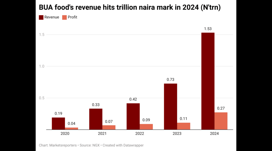 BUA Foods, a major food manufacturer in Nigeria, saw its revenue for last year double, hitting the one trillion-naira mark for the first time since 2020.